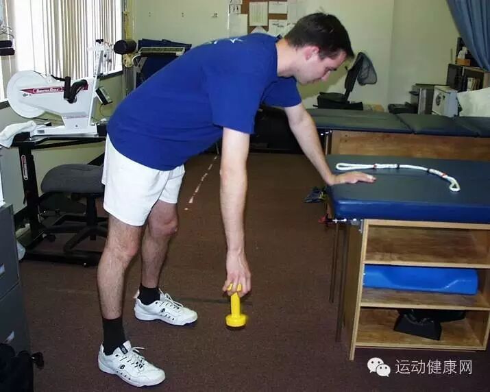 在这一阶段,肩袖因损伤后的肿胀而使冈上肌管处于狭窄的状况。l训练的主要目标是完成无痛的主动活动。①捏球练习:患者捏一个网球,在无痛的情况下,按外展、屈曲、外旋、内收、伸展、内旋的方向进行肩关节锻炼。每次每个方向作10个,每天练习两次。②Codman‘s下垂摆动练习:每个方向划10圈。③手指爬墙练习:离墙一臂远站立,患肢手指在墙上向上爬,直到感觉有疼痛感为止。每次向上爬三个来回,每天练习两次。