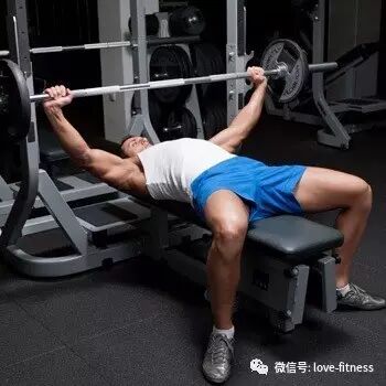 卧推时较宽握距会让你的肩部活动范围受阻,胸肌得不到充分刺激。一般建议采用与肩同宽或稍大于肩的握距。