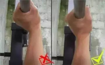 卧推时你需要让你的手腕绷直,让手掌根部正对着杠铃,虎口与小臂垂直,全程保持这个姿势征服每一次卧推重量。