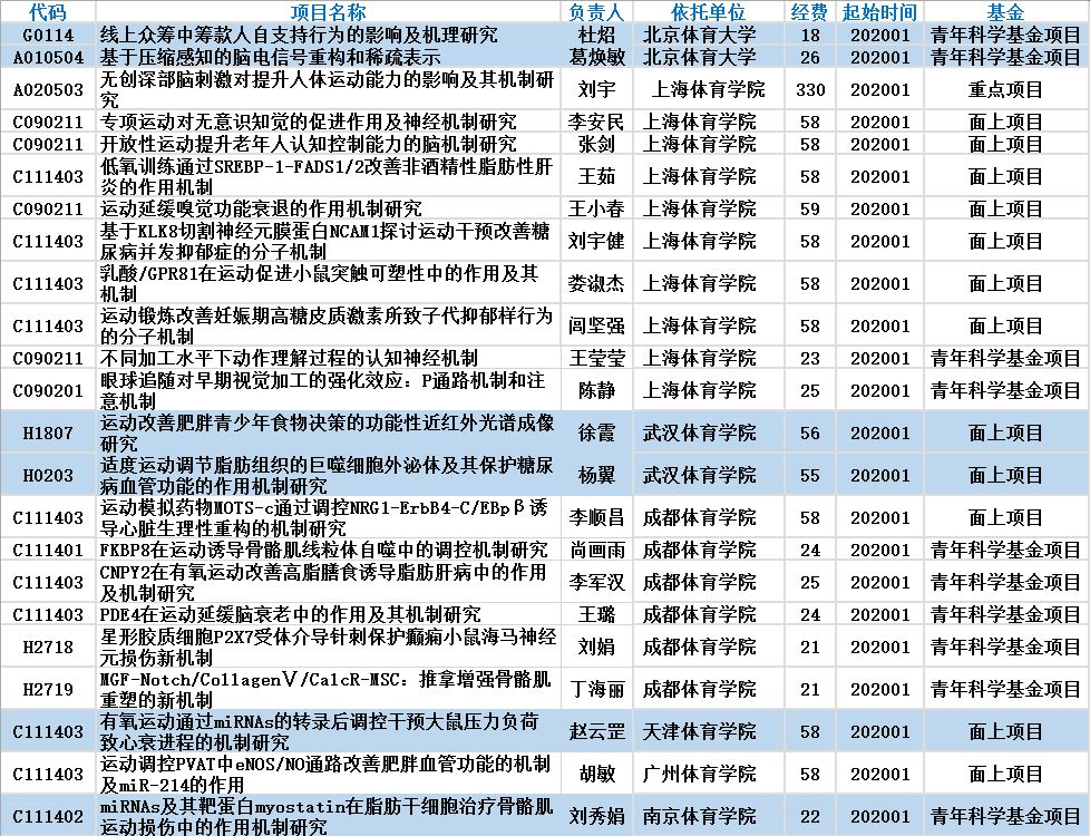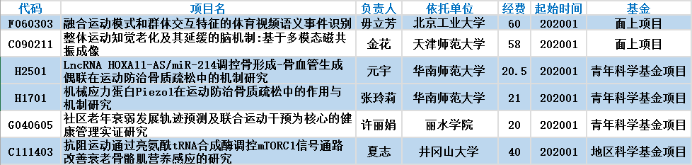 2019年国家自然科学基金项目体育学科项目
