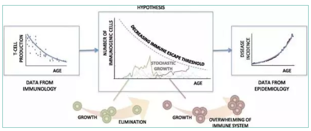 随着年龄增长,T细胞数量下降,癌症发生率增加(图片来源:PNAS)